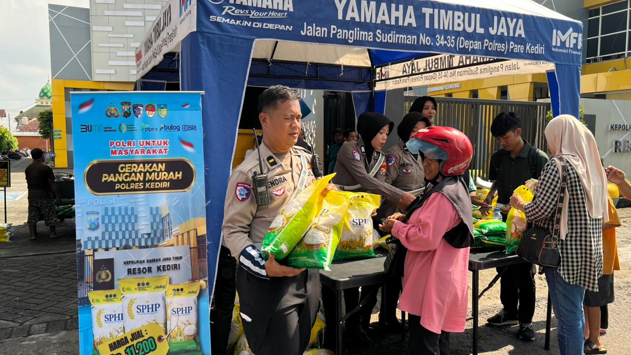 Kasatlantas Polres Kediri AKP I Made Jata Wiranegara, S.I.K., M.Si. mengatakan, kegiatan ini merupakan bentuk kepedulian Polri terhadap kebutuhan masyarakat di tengah dinamika ekonomi saat ini.