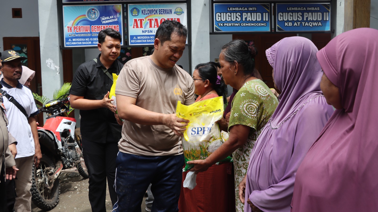 Usai kegiatan trabas, acara dilanjutkan dengan silaturahmi Kamtibmas di Balai Desa Gemenggeng yang dihadiri Camat Bagor Suwarno, S.E., M.M., kepala desa se-Kecamatan Bagor, tokoh masyarakat, serta warga penerima bantuan sosial.