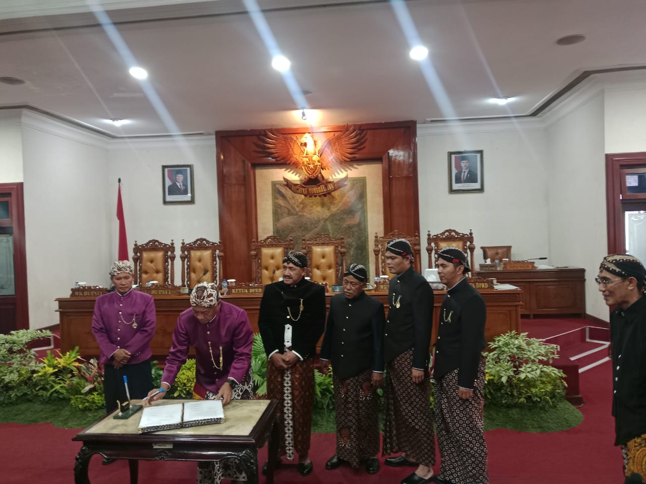 Rapat paripurna yang digelar bertepatan hari jadi Kabupaten Tulungagung ke-820 ini dipimpin langsung Ketua DPRD Marsono serta dihadiri Bupati Tulungagung Gatut Sunu Wibowo, Wakil Bupati Ahmad Baharudin, Sekda Kabupaten Tulungagung Tri Hariadi, OPD Lingkup Pemkab Tulungagung dan Camat se-kabupaten Tulungagung.