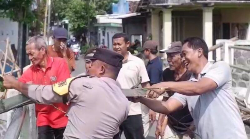 Kerja Bakti di Sungai Ploso, Polsek Nganjuk Kota Ajak Warga Antisipasi Banjir