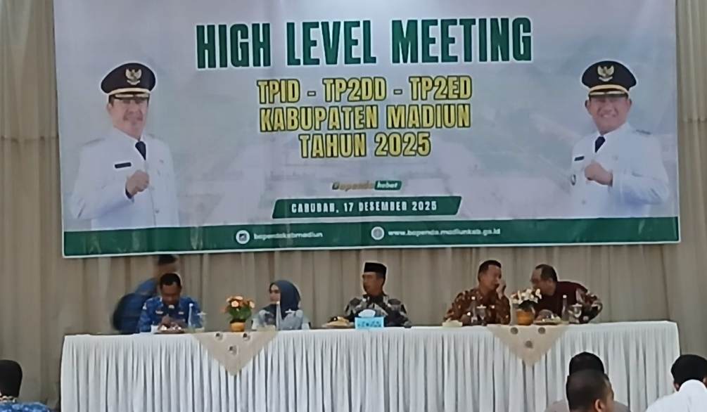 Madiun, megapos.co.id – Bupati Madiun, Hari Wuryanto menghadiri Rapat High Level Meeting Tim Percepatan dan Perluasan Digitalisasi Daerah (TP2DD), Tim Pengendalian Inflasi Daerah (TPID) serta Tim Percepatan Pertumbuhan Ekonomi Daerah (TP2ED) Kabupaten Madiun, Rabu (17/12/2025).