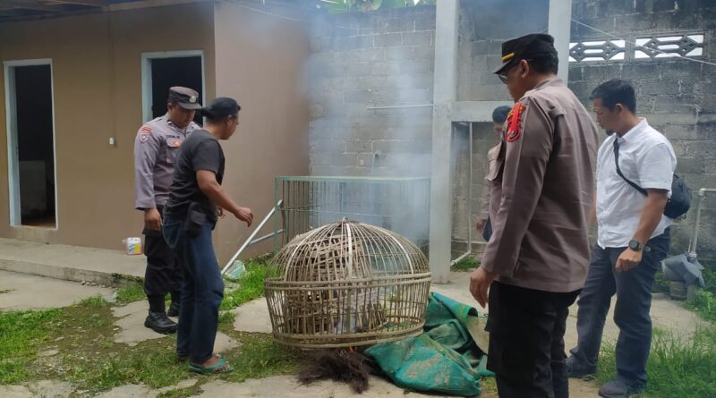 Dalam kegiatan tersebut, petugas memusnahkan sejumlah barang bukti dengan cara dibakar serta mengamankan beberapa ekor ayam untuk dibawa ke kantor sebagai barang bukti.
