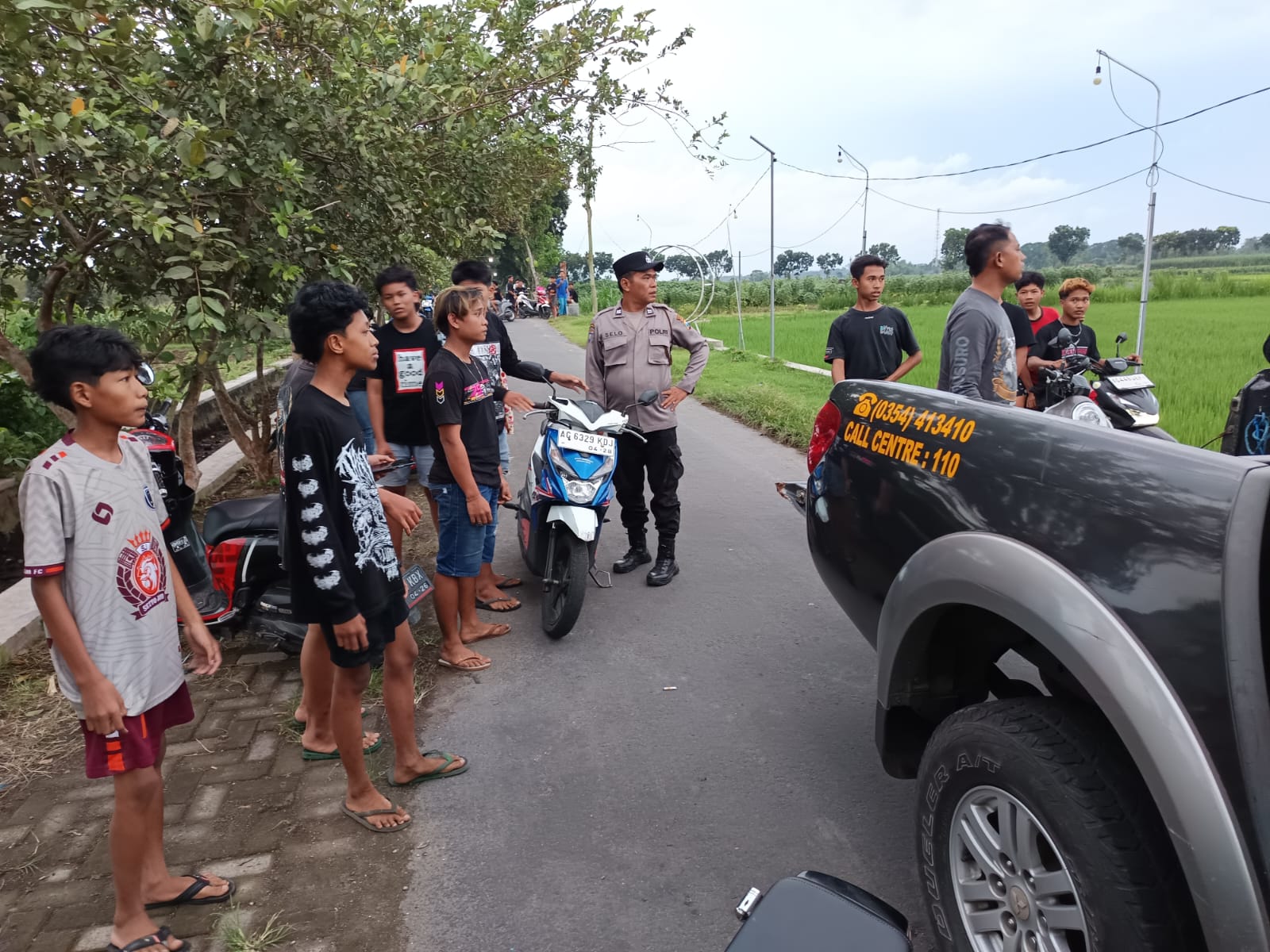 Polsek Ringinrejo Polres Kediri turun langsung membubarkan aksi balap liar di Jalan Kali Mambeg, Minggu (18/1/2026).