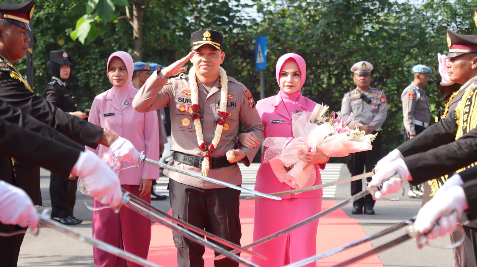 Prosesi penyambutan berlangsung khidmat dan penuh makna. Kapolres Nganjuk disambut langsung oleh Wakapolres Nganjuk, para Pejabat Utama (PJU), Kapolsek jajaran, perwira, anggota, serta ASN Polres Nganjuk.