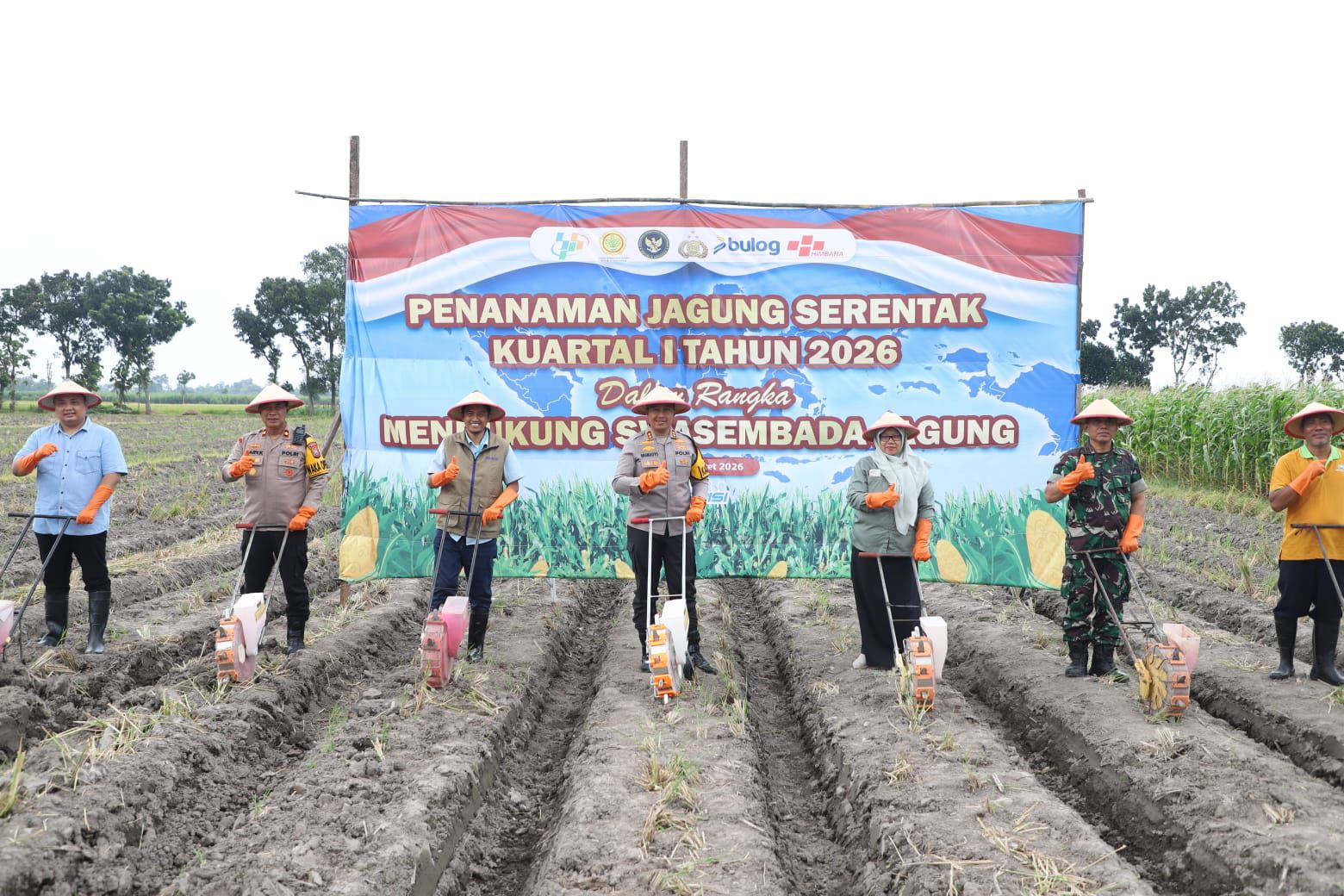 Penanaman ini merupakan bagian dari kegiatan Tanam Raya Jagung Serentak Kuartal I Tahun 2026 dalam rangka mendukung swasembada pangan nasional.